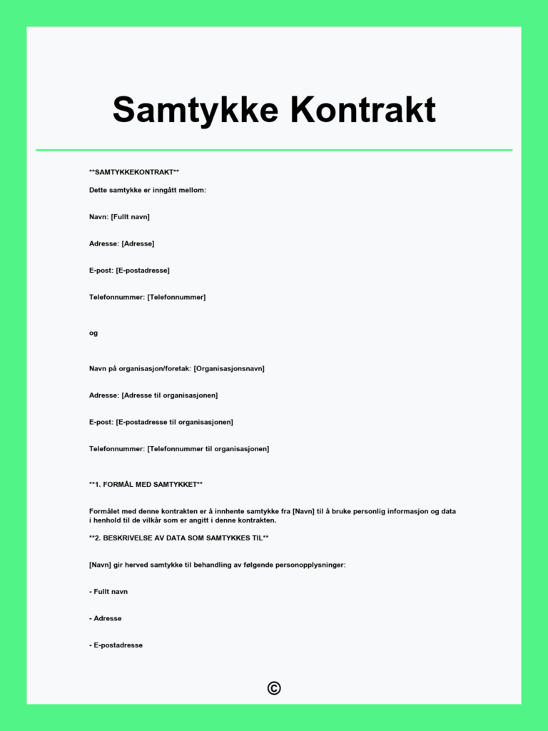 Last ned gratis samlivsbrudd kontrakt for å sikre klare avtaler ved samlivsbrudd. Enkel å bruke, juridisk trygg og tilpasset dine behov. Få ro og oversikt i dag.