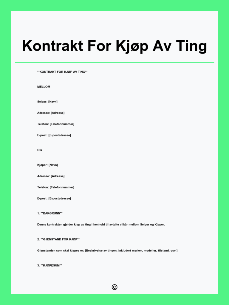 Last ned gratis kontrakt for kjøp av fast eiendom mellom private, som hus, eierseksjon eller hytte, uten megler. Enkel og trygg avtale for begge parter.