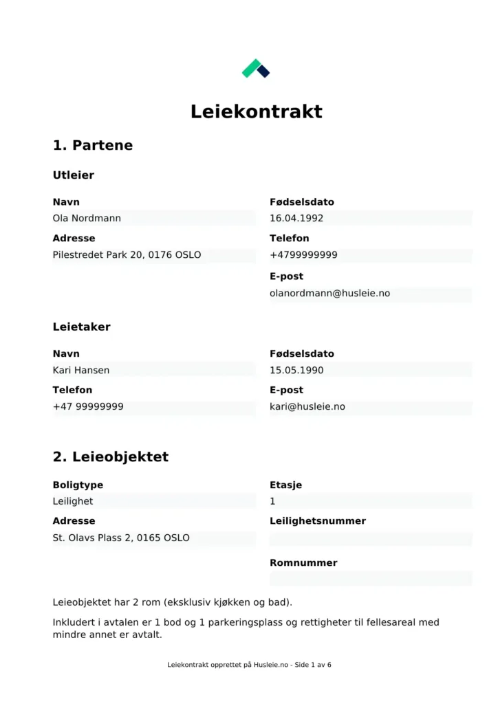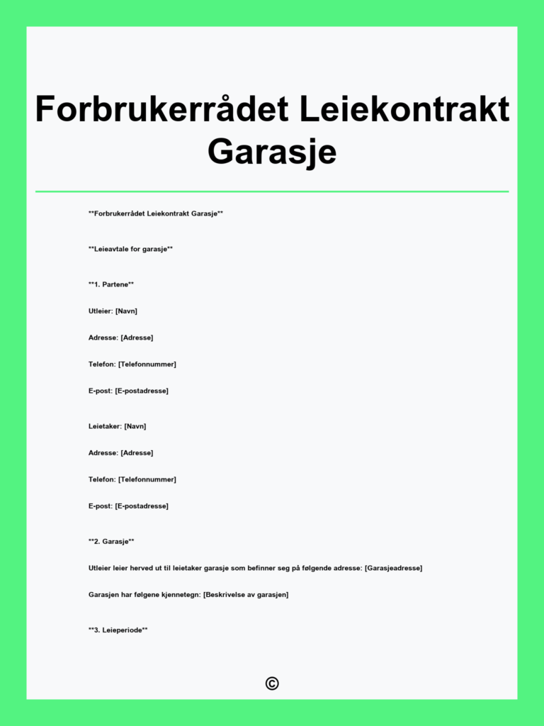 Last ned kontrakt garasjeleie i PDF gratis